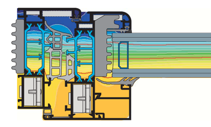 Sistema a Taglio Termico Camera Europea con telaio fisso 80mm ed anta apribile 86mm.